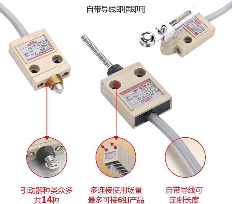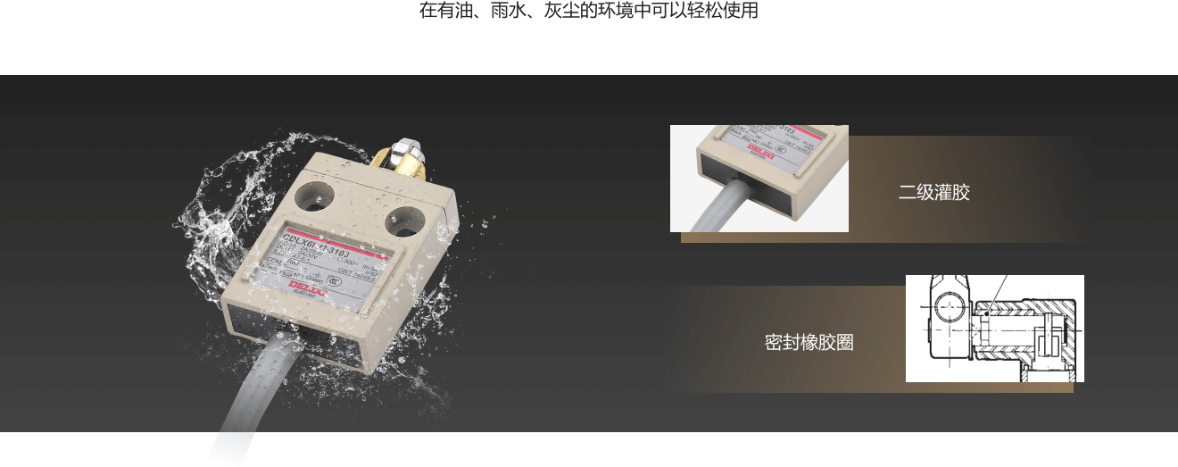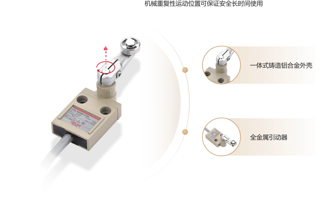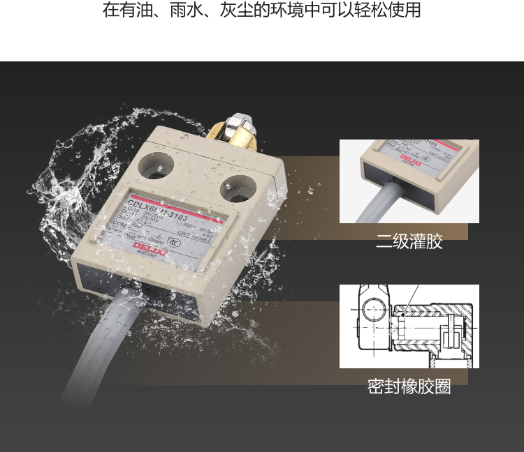 ? CDLX6HM防水限位開關(guān)集性能和顏值于一體,可完美控制運(yùn)動(dòng)機(jī)構(gòu)的行程、變換運(yùn)動(dòng)方向及速度,憑借超高性能輕松應(yīng)對(duì)各類惡劣環(huán)境,適用于 50Hz/60Hz額定工作電壓至AC250V和直流電壓至DC30V的同極性使用的電氣線路。