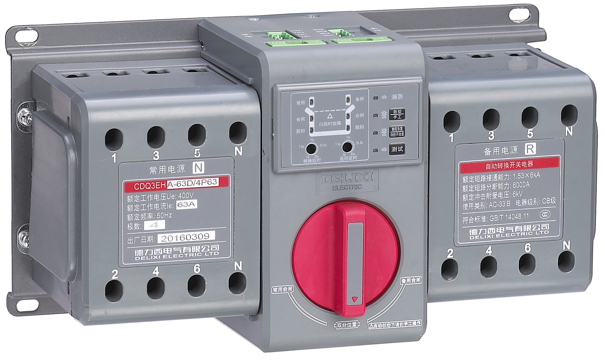 To realize automatic switching between normal power supply (I) and standby power supply (II) (manual switching can also be set). The power supply can be automatically switched due to power failure or abnormality (undervoltage, overvoltage, or voltage loss) of one power supply to ensure the continuity, reliability and safety of power supply. The current capacity is 63A, and the electric operating mechanism adopts the motor (single-phase AC) to realize the power supply switching through the power-on/off actions driven by the forward and reverse rotation of the motor.