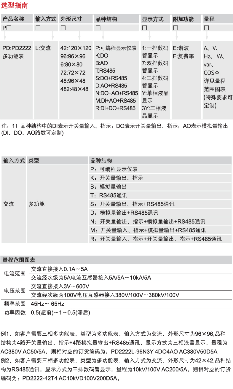 Home page >Products >Power Distribution Products >Power Management >Electrical Measuring Instruments >P*2222 Digital-display Electrical Measuring Instrument >PD2222L-□□□-□□□□ Mounted Programmable Digital Display Multifunctional Electrical Measuring Instrument