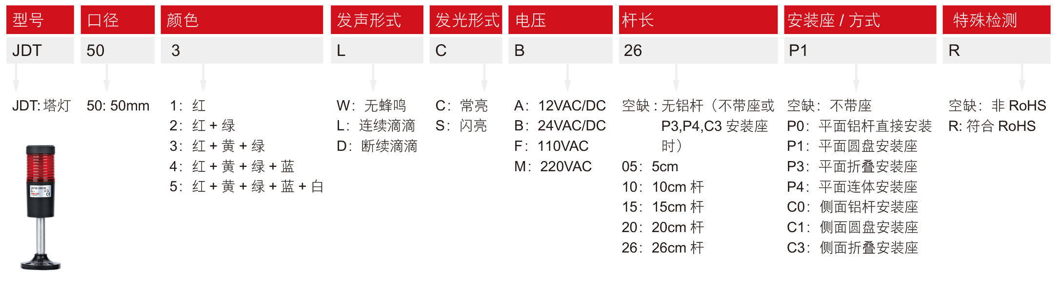 Home page >Products >Industrial Control >Industrial Equipment And Switches >Button Indicator >JDT50 Combined Tower Light