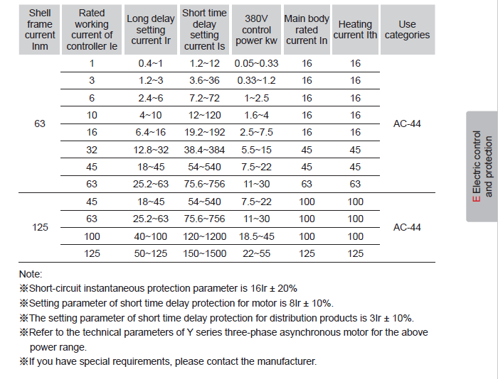 CDK1 series control and protection switching device (hereinafter referred to as CDK1) is primarily used in the AC 50Hz power system with the rated working voltage up to 380V, main rated current from 1A to 125A, adjustable working current from 0.4A to 125A for intelligent controller, and power 0.05KW to 5 5KW for control motor for making, carrying and breaking the current or voltage under the normal conditions (including specified overload conditions) and also for making and carrying for some time and breaking the specified current or voltage under the abnormal conditions (such as short circuit and undervoltage).