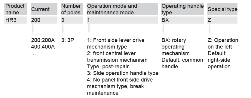 HR3 series fuse type disconnector is suitable for AC50Hz/380V power distribution system with a rated current up to 1000A for short circuit protection and overload protection of cables and wires. It can be used for infrequent manual power-on/off of normal load current and overload current under normal conditions, and for fuse current breaking.