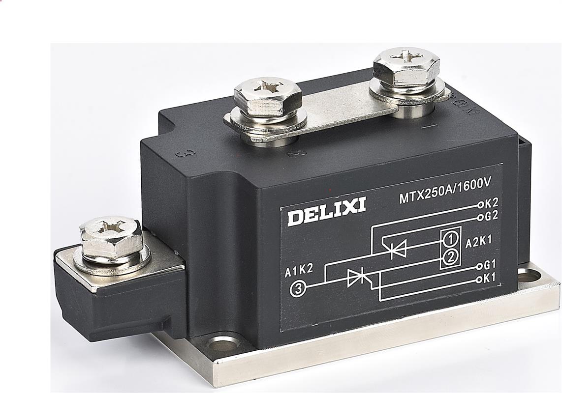 MTC, MTX series thyristor module is a switching element, and can work under high voltage and high current conditions, and its working process can be controlled. With high-power thyristor chip or rectifier chip as the core, two chips are combined into a module according to a certain circuit structure to realize switching and voltage regulation function. It is widely used in circuits of industrial heating control, AC voltage regulation, motor control, contactless switch, reactive power compensation, inverter and frequency conversion, and battery charge and discharge. The product has advantages of reliable operation, long serve life, no noise, no contact, no spark, no electromagnetic interference, fast switching speed, strong anti-interference ability, small size, impact resistance, oscillation resistance, explosion-proof, moisture-proof, and anti-corrosion features.