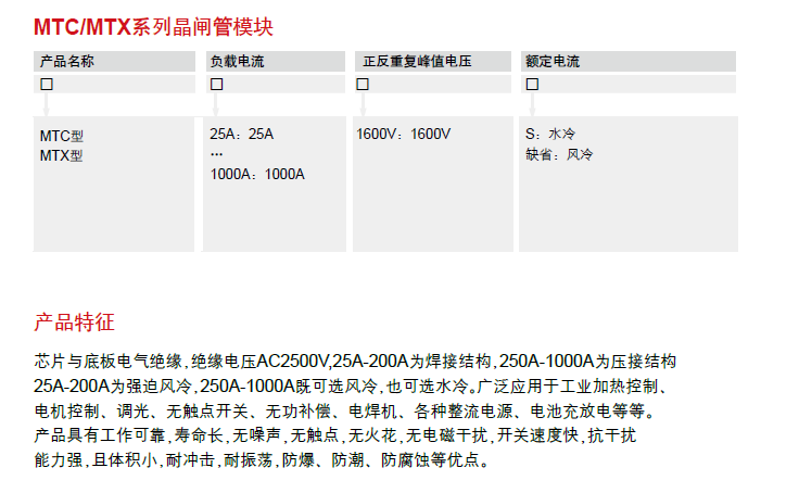 Home page >Products >Industrial Control >Relay >Solid-state Relays >MTC/MTX Series Thyristor Modules