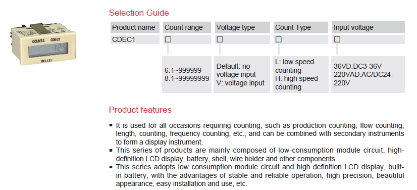 Home page >Products >Industrial Control >Relay >Counter & Timer >CDEC1 Series Subminiaturecounters