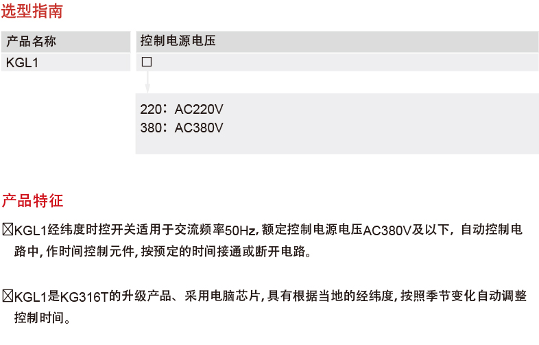 It is suitable for AC 50Hz control circuit with a voltage 380V and below as a delay timing element to automatically adjust the control time based on the seasonal changes according to the local latitude and longitude to turn on or off the power supply of various control circuits, suitable for street lights, neon lights, advertising signs, radio and television equipment and various household appliances.