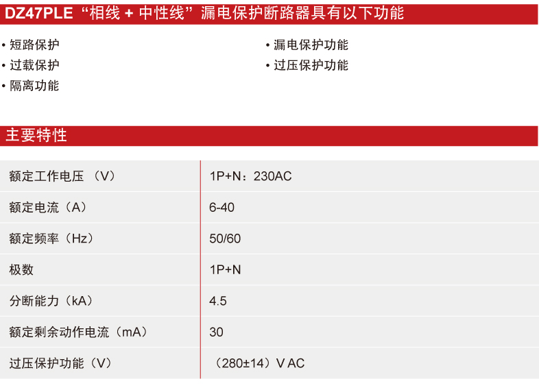 Home page >Products >Power Distribution Products >Final Distribution >Earth Leakage Protective Device >Phase + Neutral Line Earth Leakage Circuit Breaker >DZ47PLE "Phase Line + Neutral Line" Earth Residual Current Circuit Breaker