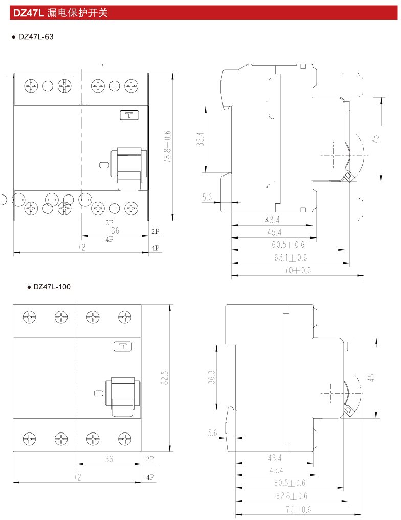 DZ47L leakage protection switch is suitable for AC 50/60Hz line with a rated voltage 230V for two-pole or a rated voltage 400V for four-pole and with a rated current up to 100A. When the electric shock occurs or the grid leakage current exceeds the specified value, the earth residual current circuit breaker can work to quickly cut off the fault current in a very short time to protect the safety of people and electrical equipment, and it can also be used for infrequent conversion of the line and for infrequent start of the motor. Products are suitable for many places such as industrial, commercial, high-rise and residential buildings.