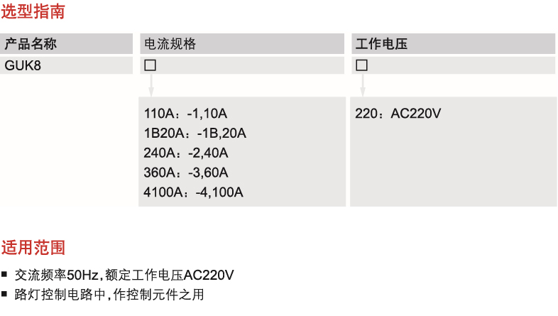It is suitable for AC 50Hz street lamp control circuit with a rated operating voltage AC220V as a control element.