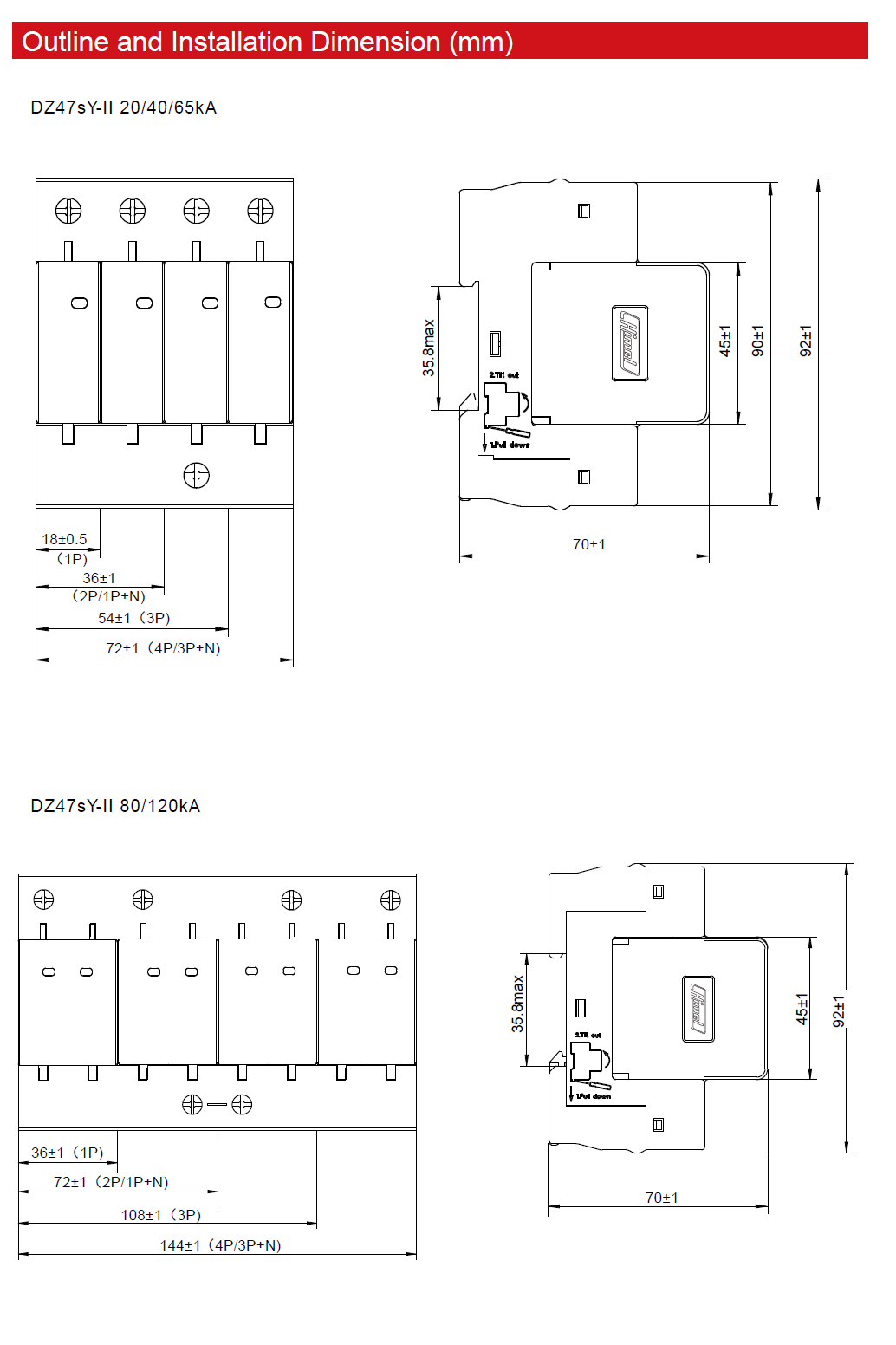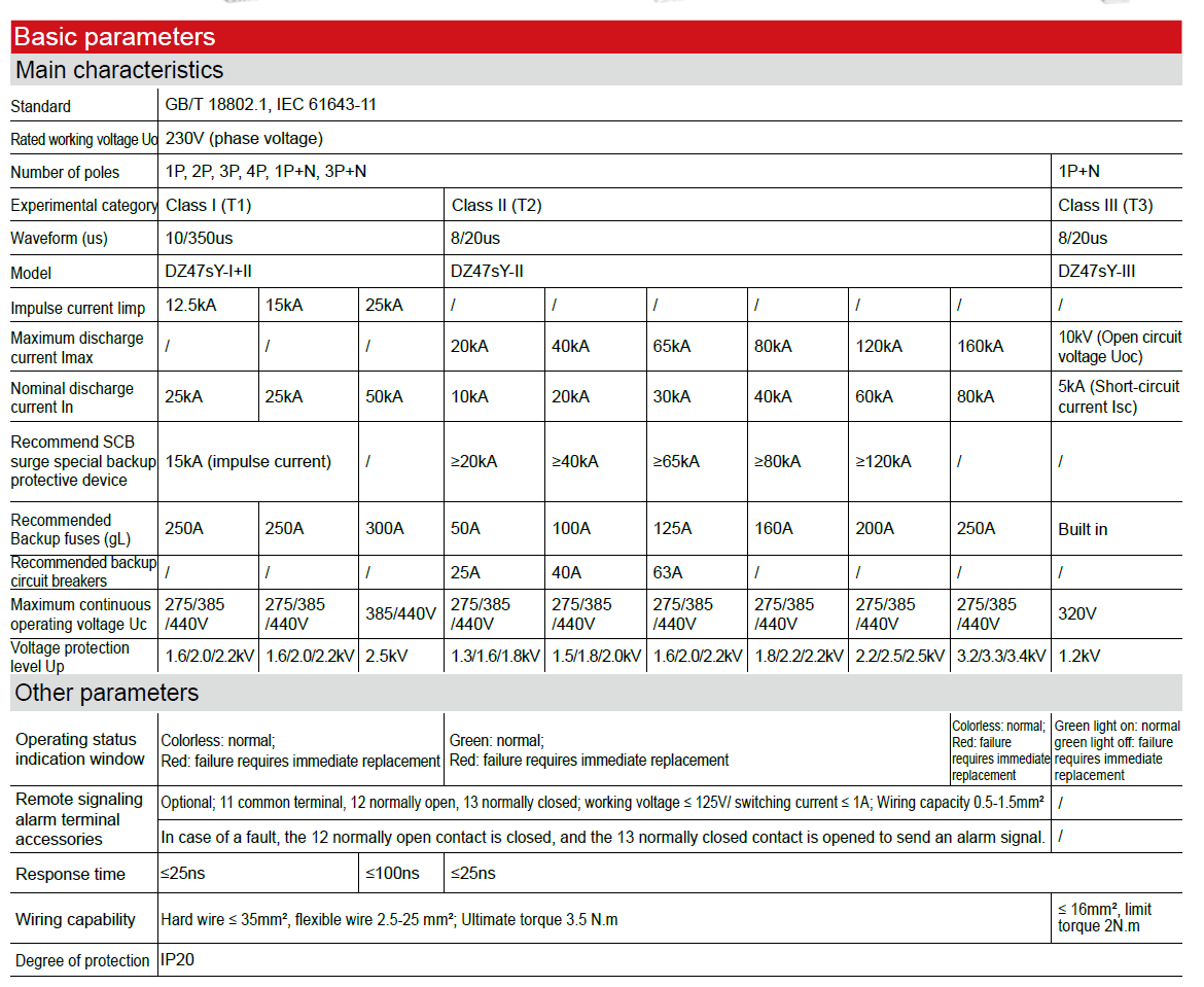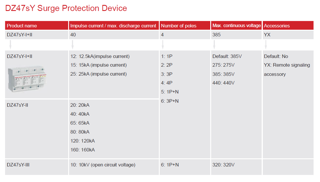 DZ47sY series surge protective device is mainly used in AC 50Hz/60Hz single-phase/three-phase power distribution system with a rated voltage 230V/400V to suppress transient overvoltage, discharge surge energy, and prevent or reduce the damage caused by transient overvoltage due to lightning strikes or operation.