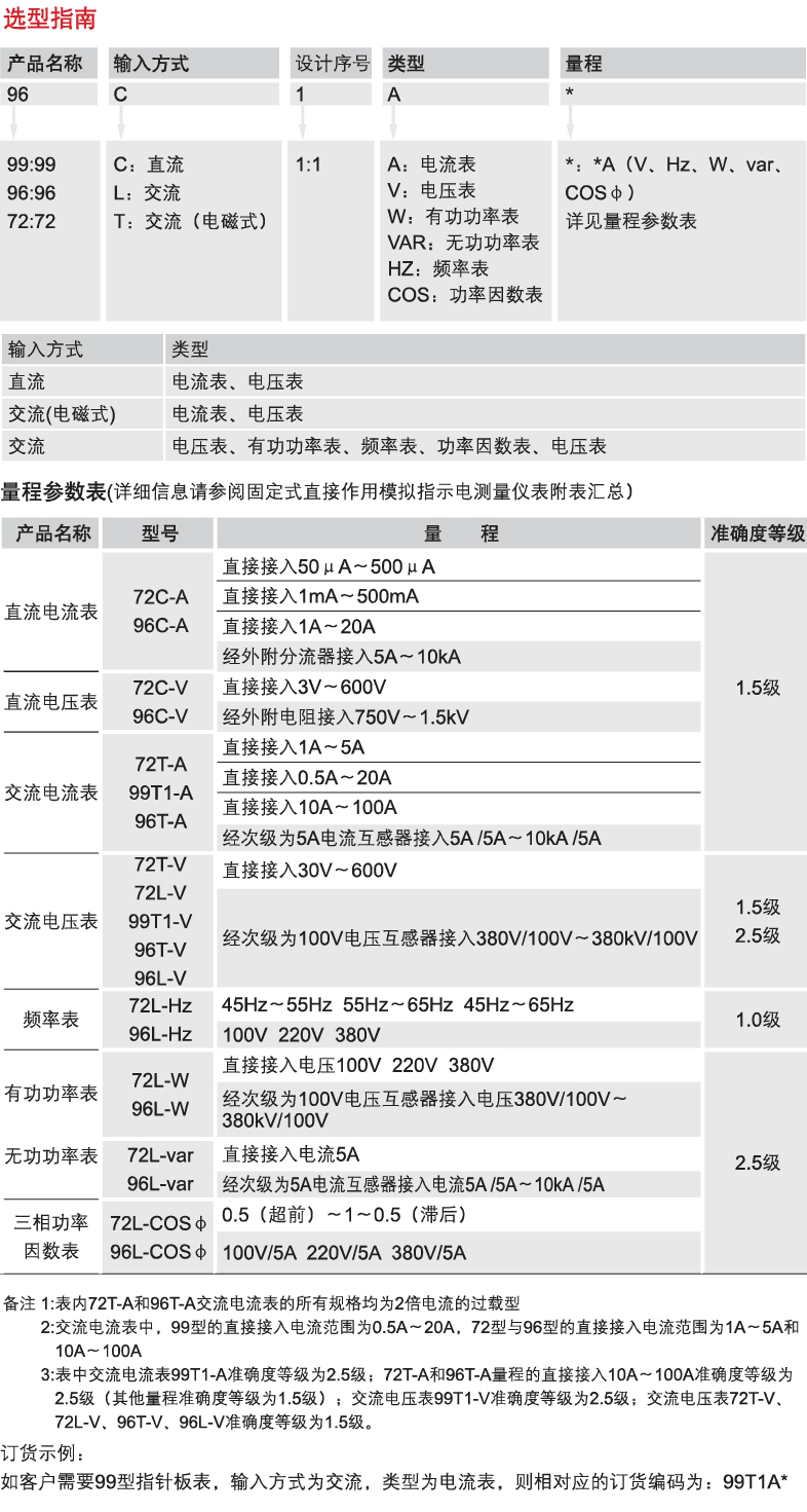 Home page >Products >Power Distribution Products >Power Management >Electrical Measuring Instruments >Analog Indicator Electrical Measuring Instruments >99T1, 96, 72 Type Fixed Direct-Acting Analog Indicator Electrical Measuring Instrument