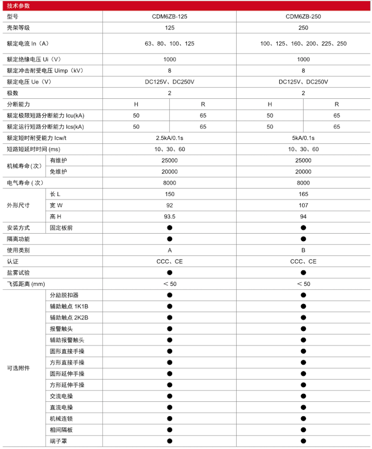 CDM6ZB DC moulded case circuit breaker is suitable for DC circuit with a rated working voltage DC125V, DC250V and a rated current 63A ~ 800A, and can be widely used in DC environments such as photovoltaic power generation, charging pile, power plant, power supply, rail transit, and communication for electric energy distribution, line and power equipment protection to avoid hazard due to faults such as overload and short circuit. This series of products has a short-circuit short-delay function, and can comprehensively improve the distribution and management efficiency of electric energy.
