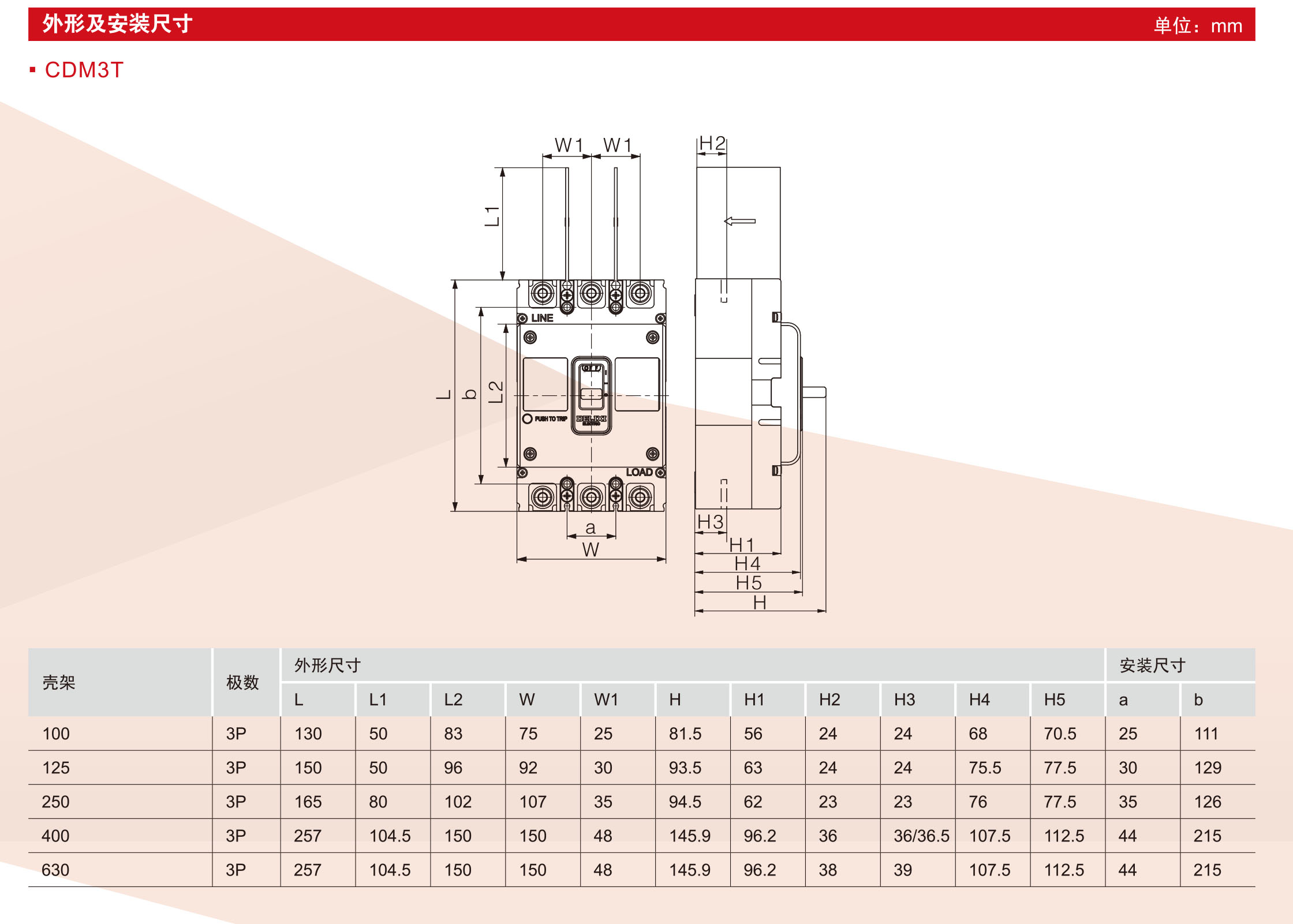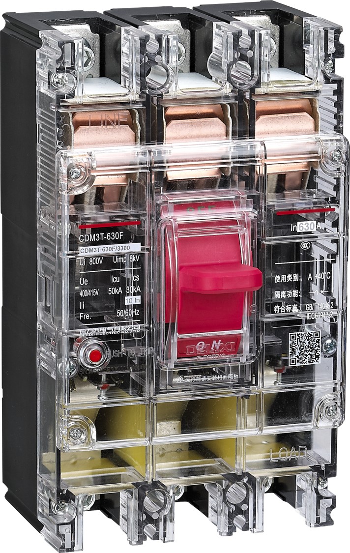 The new CDM3T series moulded case circuit breaker products are suitable for AC circuits with a rated working voltage AC400/415V and a rated current of 16-630A. With high-quality, transparent and visible products, provide stable electrical protection for temporary power consumption places in industry, commerce, civil buildings, and infrastructure. It is used for electric energy distribution and lines and power equipment protection to avoid damage caused by faults such as overload and short circuit.