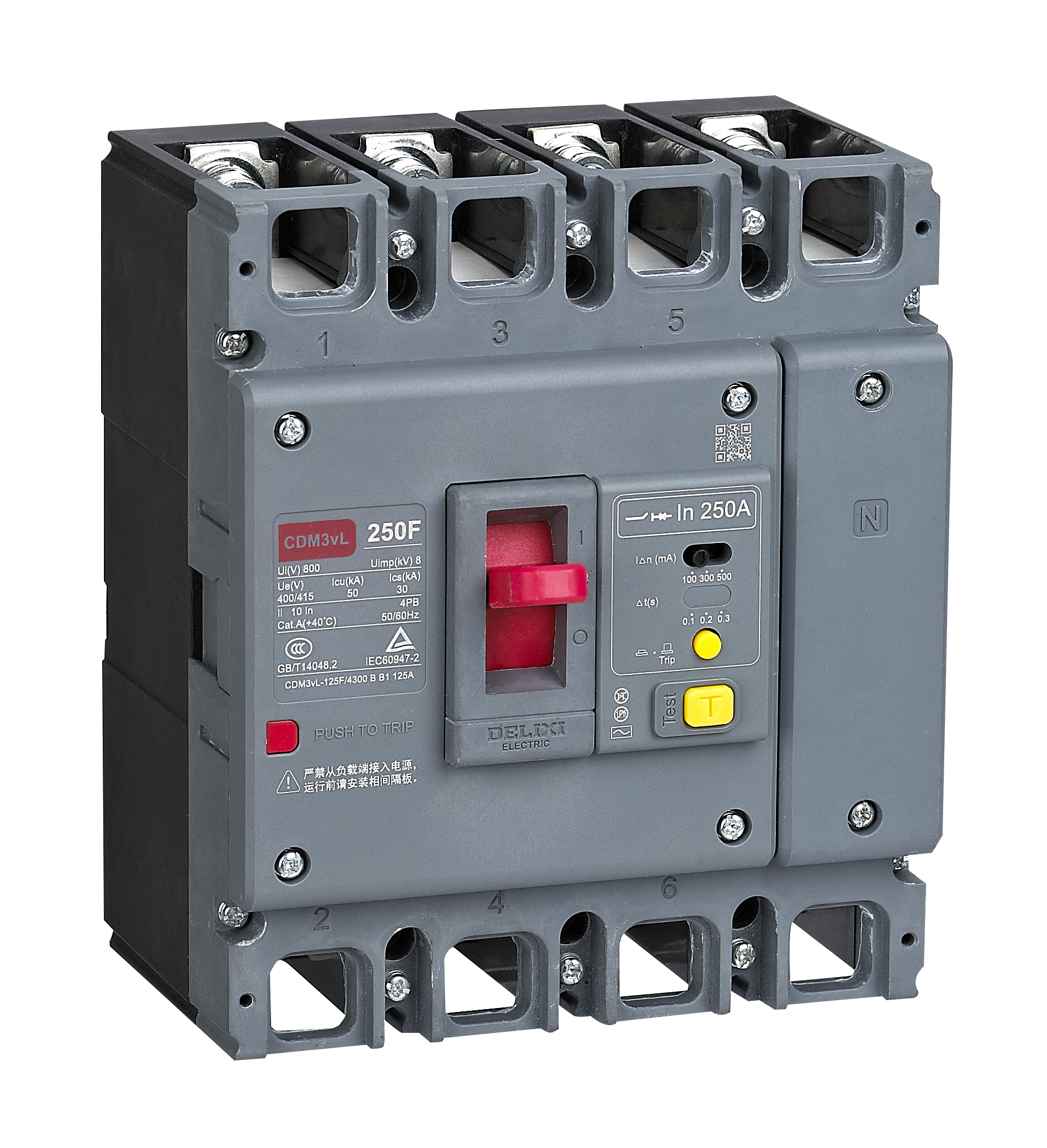 CDM3vL series residual current operated circuit breaker has its main function to provide indirect contact protection for personal electric shock that causes fatal danger, and to provide protection for electrical fire caused by ground fault current, such as insulation damage. It can provide the protection of circuits and equipment in case of overload, short circuit, or undervoltage (accessory function) of the power distribution line, and is widely used in low-voltage power places such as electric power, construction, industry, and OEM.