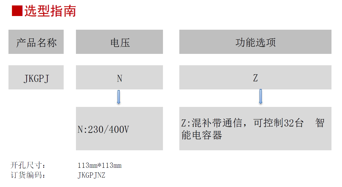 JKGPJ type intelligent low-voltage reactive power compensation controller is a product integrating with multiple functions of data acquisition, communication, reactive power compensation, grid parameters, and analysis with reliable operation. Data display adopts blue light LCD screen display with artistic and elegant interface and rich display contents. This product can be connected to our company’s composite switch (communication type) through RS485 interface to control ordinary capacitors for reactive power compensation.
