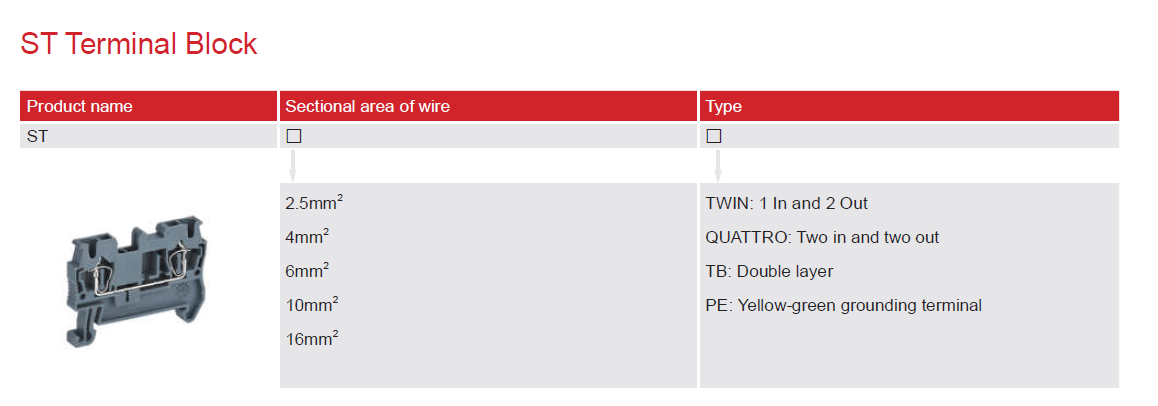 Home page >Products >Industrial Control >Industrial Equipment And Switches >Terminal Blocks >ST Series Terminal Blocks