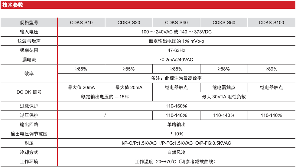 CDKS-S series products are single-output rail-mounted switching power supplies with ultra-thin plastic shell design and has a universal input voltage 100-240VAC. With DC OK signal output, the entire series provides 5V 12V 15V 24V 36V 48V outputs (those with special requirements can be customized). CDKS-S series products provide a cost-effective solution for various industrial applications, and are mainly used in industrial automation, electronic information, and security monitoring fields