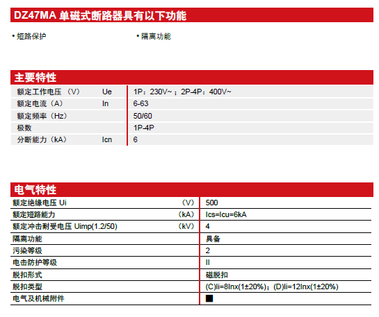 Home page >Products >Power Distribution Products >Final Distribution >Miniature Circuit Breaker >Miniature Standard Circuit Breaker (GB14048.2) >DZ47MA Single Magnetic Circuit Breaker