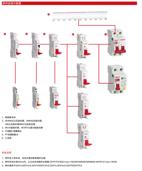 FF9 series auxiliary contacts (auxiliary contacts with alarm function) are mainly used in AC 50/60Hz alarm circuits with a rated voltage not exceeding 415V and a rated current 1A~6A. This series of auxiliary contacts can realize the opening and closing indication of remote circuit breaker by remotely connecting signal lights.