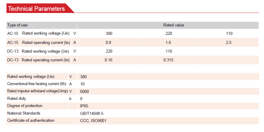 It is suitable for AC 50-60Hz control circuit and auxiliary circuit with a voltage up to 380V and with a DC voltage up to 220V for control, control signal, and interlock.
