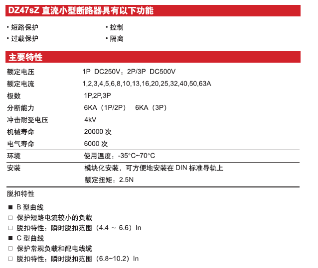Home page >Products >Power Distribution Products >Final Distribution >Miniature Circuit Breaker >Dc Miniaturee Standard Circuit Breaker >DZ47sZ DC Moulded Case Circuit Breaker