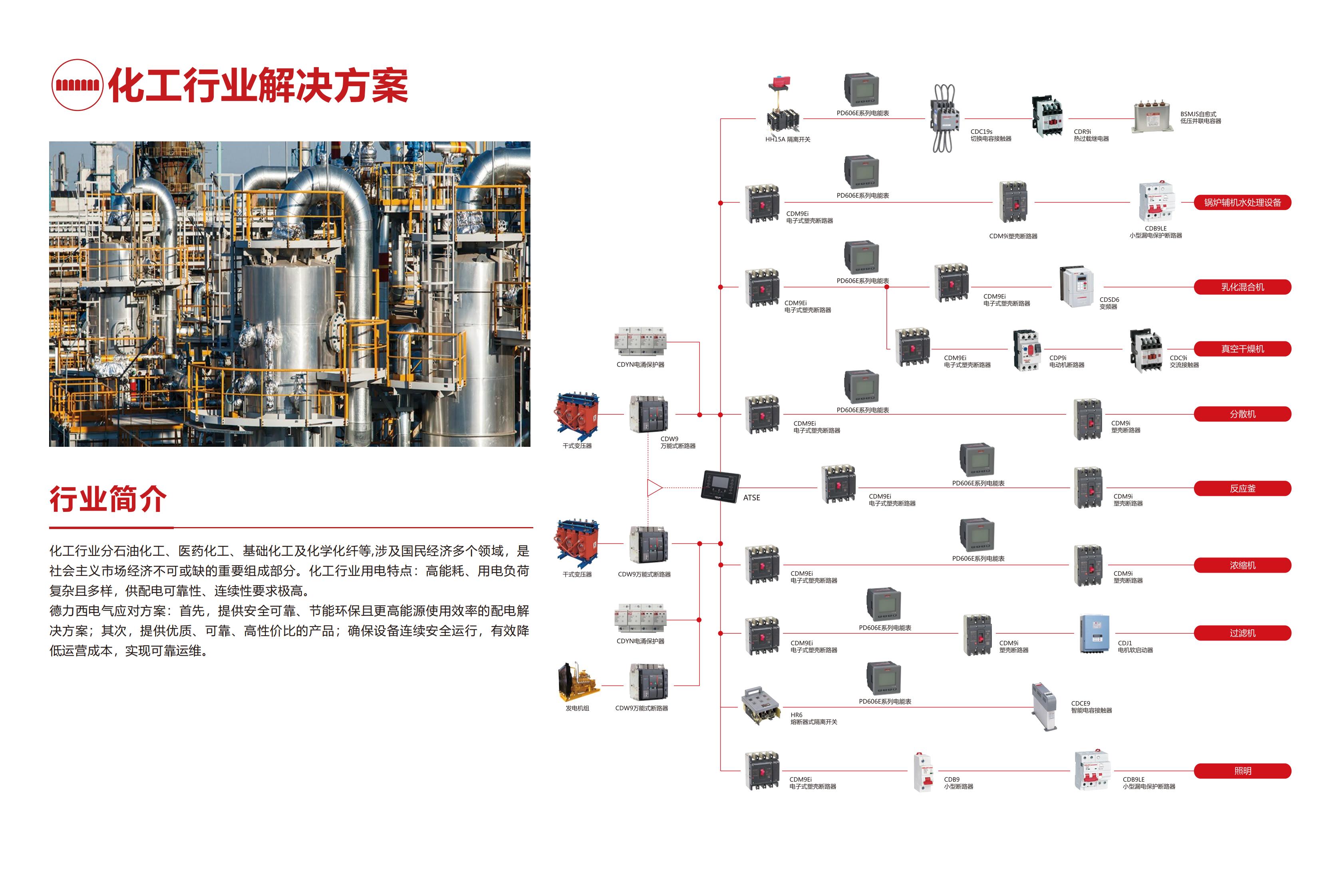 化工行業(yè)是國(guó)家綜合國(guó)力的體現(xiàn),近年來(lái),化工企業(yè)數(shù)量多、規(guī)模大,連續(xù)性強(qiáng)、安全性要求高,配電自動(dòng)化要求高,因此對(duì)供電連續(xù)性、安全性、可靠性提出更高要求。針對(duì)化工行業(yè)的需求特點(diǎn),德力西電氣提出了行業(yè)領(lǐng)先的解決方案,通過(guò)對(duì)系統(tǒng)各個(gè)參數(shù)的計(jì)算,合理選擇配電保護(hù)裝置,并采用微機(jī)保護(hù)系統(tǒng)進(jìn)行全面監(jiān)測(cè)與控制,保障生產(chǎn)安全。