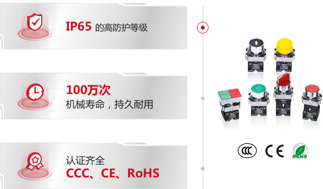 ? CDLA6H按鈕開關(guān),集顏值與才華于一身:美觀新穎、結(jié)構(gòu)緊湊、可靠性高、安裝方便、壽命長(zhǎng),適用于交流50/60HZ,額定電壓380V及220V或交直流額定電壓220V及以下的機(jī)械設(shè)備二次回路中。